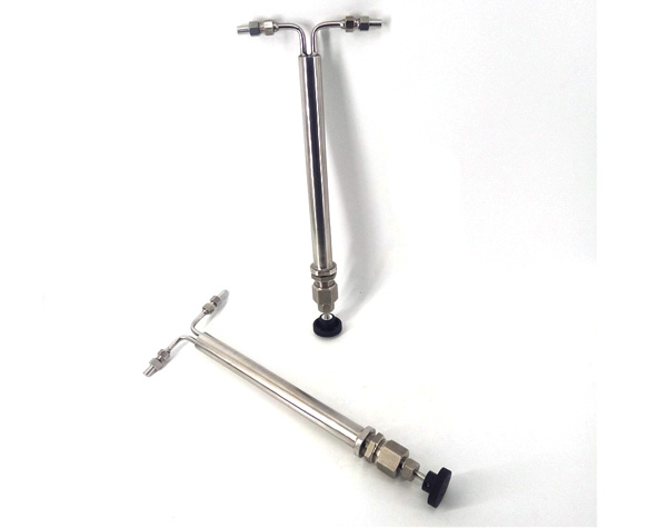 雙針式減壓閥采用超長調節通道和超長調節閥桿的設計,很大范圍的進行流量、壓力的調整。棒針式減壓閥TS-193A流量調節從每公鐘150毫升至4公升、壓力下降至5000Psig的345巴爾格。該減壓閥的減壓的主要原理是當高壓樣水通過時,利用細長棒針與管內孔之間的間隙,達到減壓的目的。當減壓閥的入口處壓力一定時,只須改變棒針的插入深度,即可調整減壓閥出口壓力,控制樣品流量。