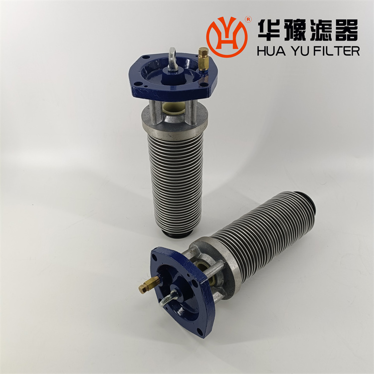 每一濾芯組件由濾器蓋、濾芯套筒、濾片及濾片圈等組成,濾器蓋頂部裝有放氣閥,供排出濾器內(nèi)腔的空氣用。 濾片套在濾芯套筒上,是濾器的主要過濾元件,由濾網(wǎng),支承網(wǎng)及波紋隔盤等組成,濾網(wǎng)的網(wǎng)目數(shù)由用戶根據(jù)需要選用。轉(zhuǎn)換閥體是由鑄鋁鋁合金制成的椎體,與閥孔研磨配合,閥體上鑄有上下兩油道孔,上油道孔一端通濾芯上方油腔,一段通濾器出口,下油道孔一段通濾芯腔,一段通濾器進(jìn)口,當(dāng)轉(zhuǎn)換閥迅速從一極限位置轉(zhuǎn)至另一極限位置時(shí),閥體將一濾芯腔的通路關(guān)閉,而將另一濾芯腔的通路打開,此時(shí),壓力油從濾器進(jìn)口流入濾芯腔,經(jīng)濾網(wǎng)過濾后的清潔油經(jīng)上方油腔從出口流出,達(dá)到濾清油液的目的。轉(zhuǎn)換閥體軸端頭上的箭頭指向接通的濾芯腔的一邊。